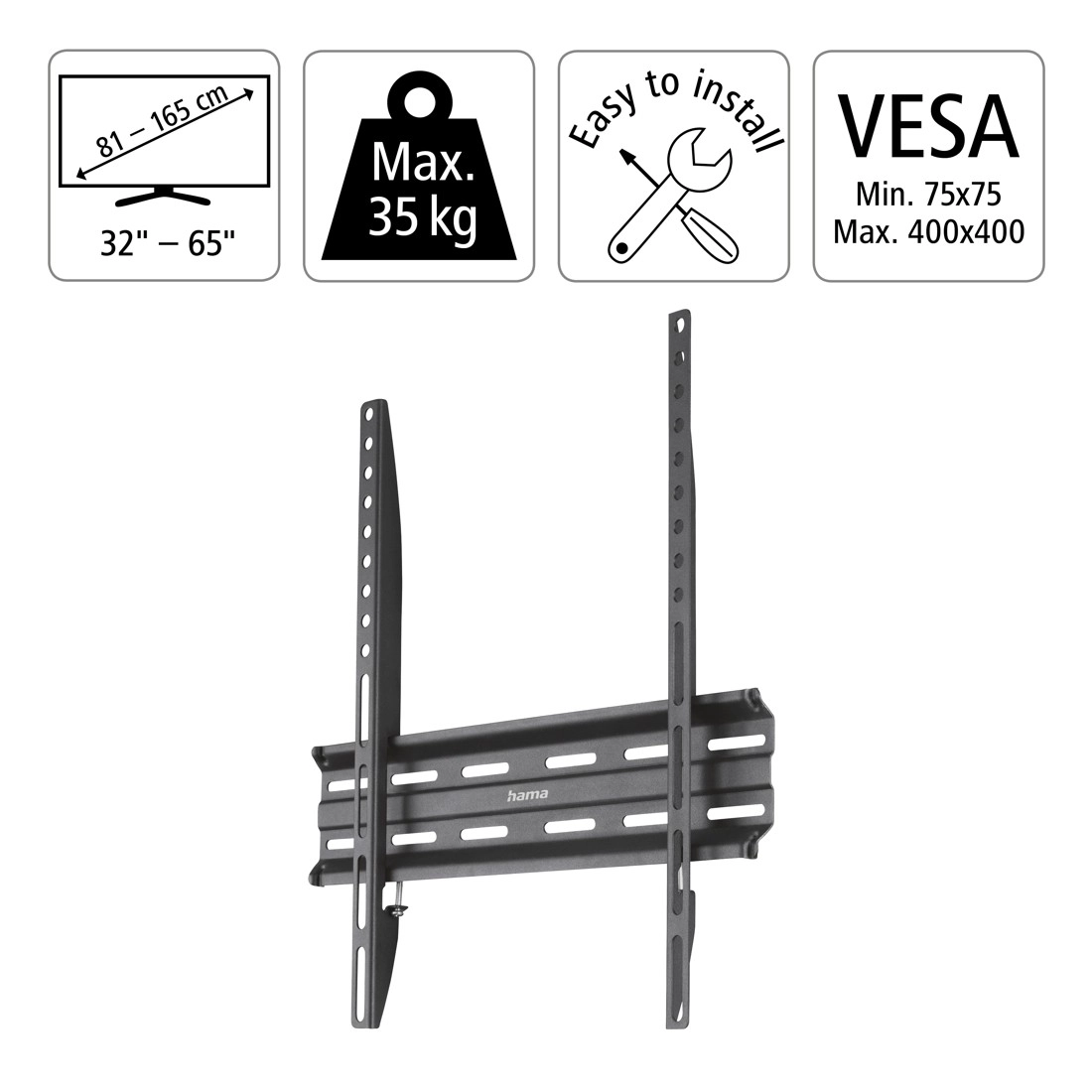 Hama vægbeslaget er den ideelle løsning til sikker og æstetisk montering af tv på væggen. Med en afstand til væggen på kun 2,3 cm og en robust stålkonstruktion sikrer det stabilitet og et elegant udseende.