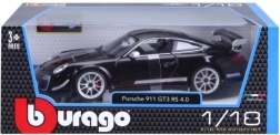 Porsche 911 GT3 RS 4.0 modellen er placeret i en gennemsigtig plastikboks, ideel som legetøj eller samlerobjekt.
