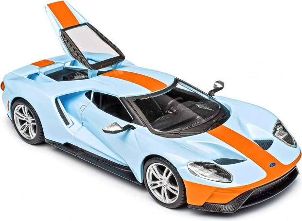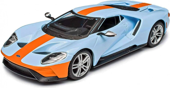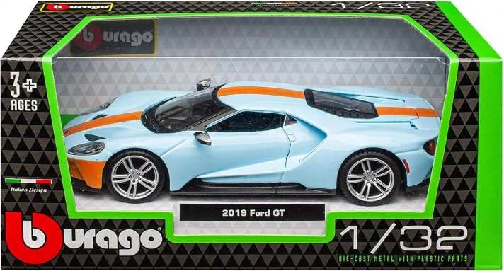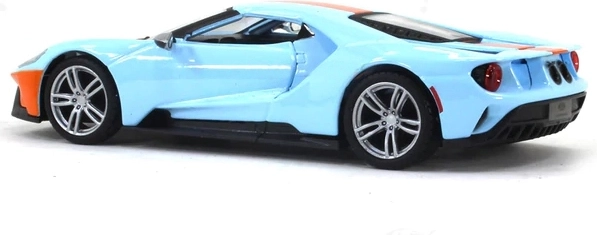Denne detaljerede Bburago-model bringer den legendariske Ford GT til din samling i en attraktiv kombination af lyseblå med orange racerstriber. Takket være kvalitets die-cast metal og nøjagtige proportioner fremstår modellen meget realistisk og fremhæver enhver hylde eller montre.