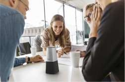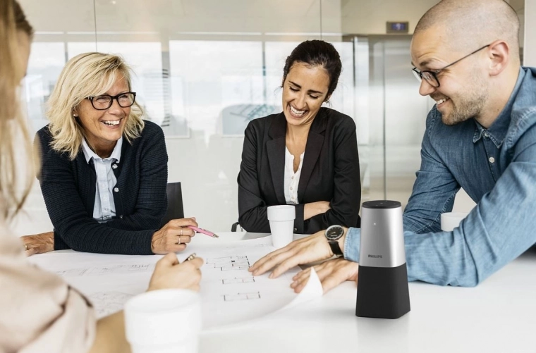 Fire mikrofoner med støjreduktion opfanger op til 6 m rundt om bordet, og en høj kvalitets højttaler sikrer tydelig forståelse af hvert ord.