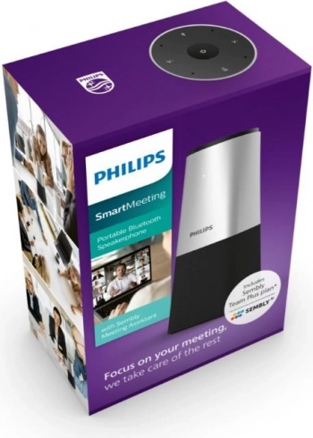 Philips SmartMeeting konferencemikrofon med Sembly Meeting Assistant tager sig af noter og overblik fra hvert møde, så teamet kan fokusere på det vigtige. Avanceret støjreduktion, taleforstærkning og 360° optagelse med 4 mikrofoner giver naturlige og forståelige samtaler for op til 6 personer rundt om bordet.