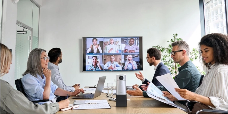 Fang hver detalje med 4K‑kamera, fleksibel pan/tilt/zoom og automatisk taler-sporing for et professionelt indtryk ved hvert møde.