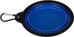 Praktisk sammenklappelig skål med karabinhage, ideel til rejser og gåture.