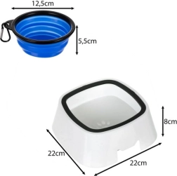 Skålen er let, nem at transportere og hurtigt sammenklappelig til øjeblikkelig brug. Med en kapacitet på 1500 ml er den egnet til hunde i alle størrelser. Pakken inkluderer også en praktisk sammenklappelig skål på 350 ml, ideel til rejser eller udendørs aktiviteter.