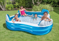 Nyd sommeren fuldt ud med en rummelig oppustelig pool, der tilbyder 4 integrerede sæder med ryglæn i hjørnerne for maksimal komfort. Holdbare PVC-materialer, en stabil konstruktion med 2 luftkamre og gennemtænkte detaljer gør den til den ideelle løsning til have, terrasse og ferie.