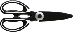 Saksen tilbyder alsidige funktioner som flaskeåbner, nøddenøgle, skraber til skæl og klassiske køkkensakse til skæring. Den mikrotakkede klinge garanterer præcis og stabil skæring selv under krævende forhold.