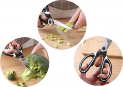 Forbedr dine madlavningsevner med dette ekstraordinære værktøj, der kombinerer funktionerne fra traditionelle sakse med andre nyttige redskaber. Skridsikker klinge og behagelige håndtag gør dette værktøj ideelt til daglig brug og hjælper med at spare tid og plads. Solid konstruktion og kompakt størrelse sikrer nem opbevaring og sikker anvendelse.