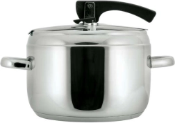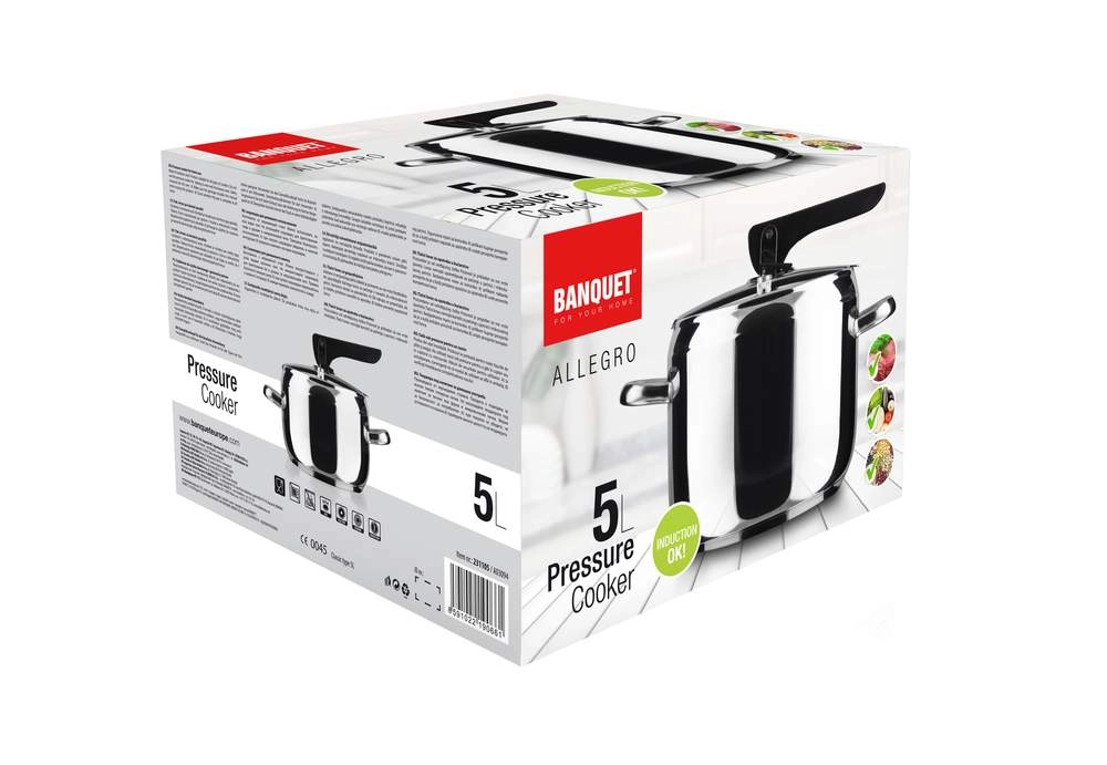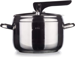 5 l trykkoger i rustfrit stål med låsehåndtag, diameter 20,8 cm, højde 15 cm, rustfrit stål 18/0, godstykkelse 0,6 mm, 2 ventiler, kraftig sandwichbund. Låget indeholder to ventiler, en hoveddriftsventil og en hjælpe-/sikkerhedsventil. Trykkogeren er beregnet til hurtig tilberedning af retter og kan bruges på alle typer kogeplader, inklusive induktion. Låget på trykkogeren indeholder en hoveddriftsventil og en hjælpeventil til tilfælde af tilstopning af driftsventilen, hvilket gør gryden ekstraordinært sikker! Trykkogeren er fremstillet af et robust materiale, har en kraftig bund og kan bruges på alle typer kogeplader.