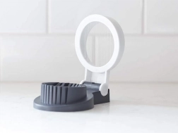 Den robuste men lette plastkrop er nem at vedligeholde, og takket være de kompakte mål passer den også i en lille skuffe. Betjeningen er intuitiv: læg ægget i holderen og tryk forsigtigt låget med trådene ned.