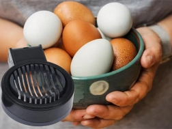 Sættet af stærke tråde skærer æg i tynde, ensartede skiver, ideelle til salater og sandwiches.