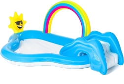 Denne vandlegeplads er det perfekte valg til børn til jeres sommer. Takket være den venlige kombination med regnbueport og sol vil jeres børn få timevis af sjov i det forfriskende vand. Bassinets multifunktionalitet giver ikke kun kølig skygge fra sommervarmen, men bringer også latter og glæde med sine mange funktioner.
