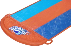 Kickstart sommeren med BESTWAY vandsklien på 4,88 m og tre kørebaner til børnenes kapløb. Integrerede sidemonterede brusehoveder holder overfladen glat – blot tilslut haveslangen, og så er legen i gang. Det holdbare PVC-materiale, den bløde landingszone og enkel opsætning uden værktøj sikrer tryg og endeløs vandleg for børn fra 3 år.