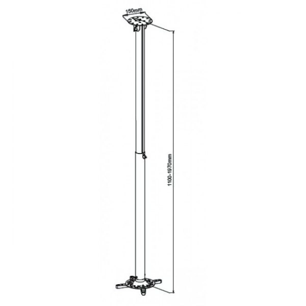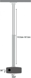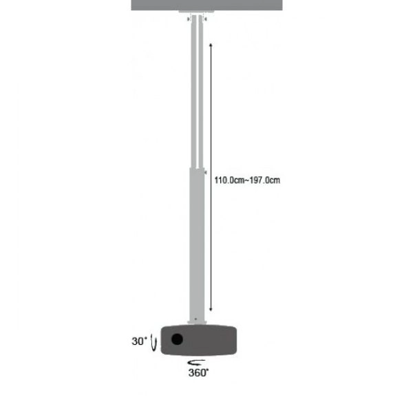 Universelt loftbeslag til projektor med nem installation og justerbar længde 110–190 cm. Takket være den robuste aluminiumskonstruktion bærer det op til 15 kg, tilbyder vippefunktion, 360° rotation og integreret kabelstyring for en ren installation i hjemmet, på kontoret og i kommercielle miljøer.