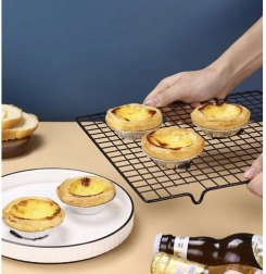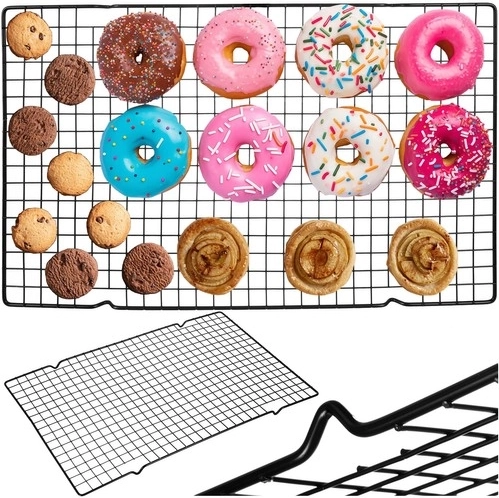 Takket være det tætte gitter er den også ideel til overhældning med glasur, chokolade og glazurer – overskydende kan frit løbe af, mens desserterne forbliver stabile. Risten beskytter samtidig bordpladen mod varme og gør det nemt at arbejde rent og præcist ved dekoration.