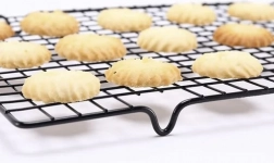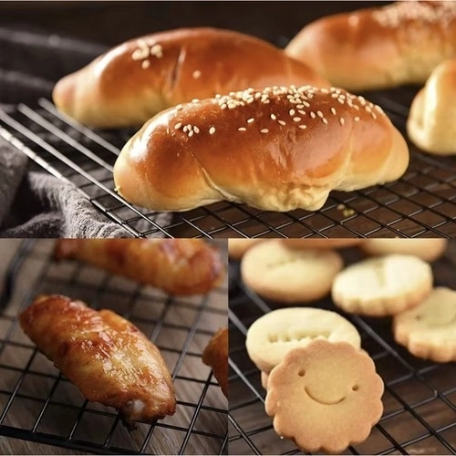 Forhøjede fødder og tæt net sikrer, at bagværk køler jævnt fra alle sider uden kondens og opblødning.