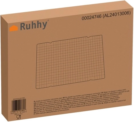 Køleristen RUHHY i størrelsen 40 × 25 × 1 cm er uundværlig for alle, der elsker at bage. Den robuste konstruktion af kulstofstål og fire stabile fødder sikrer jævn luftgennemstrømning både under og over bagværket, så tærter, småkager, muffins og kagelag køler hurtigere uden fugtkondens.