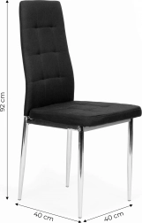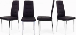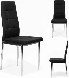 Opgrader dit hjem med dette sæt af fire moderne sorte stole med kromben, designet til stilfuld og komfortabel sidning. Disse stole passer nemt til ethvert spisebord og tilføjer det rigtige præg til din indretning takket være det elegante design af sort økolæder. De er det ideelle valg for dem, der søger moderne løsninger uden at give afkald på komfort.