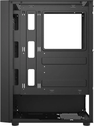 Estetikken i din opsætning fremhæves af sidepanelet i hærdet glas, ideelt til komponenter med belysning. Den moderne overfladefinish giver et attraktivt udtryk, og det praktiske støvfilter sikrer nem rengøring af dit system.