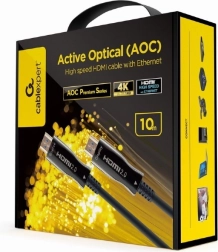 Denne 10 meter lange Active Optical HDMI-kabel med ethernet sikrer lange og stabile signaloverførsler ved hjælp af optiske fibre. Den er modstandsdygtig over for interferens, let at installere og ideel til overførsel af indhold i 4K UHD-opløsning.