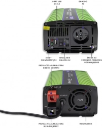 Qoltec spændingsomformeren fungerer ikke kun som en omformer fra 12V til 230V, men også som en batterioplader og en UPS-nødstrømsforsyning. Ved tilslutning til et batteri sikrer den stabil strøm til de tilsluttede enheder. I tilfælde af strømsvigt skifter den automatisk til batteridrift. Takket være ren sinus garanteres sikkerhed for alle tilsluttede enheder, hvilket gør den ideel til rejser eller situationer uden adgang til stikkontakt.