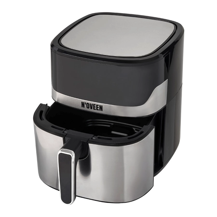 Med varmluftsfrituren N'OVEEN AF550 6,5 l tilbereder du sprøde og sunde retter med et minimum af olie. Den tilbyder 8 automatiske programmer (bøf, kylling, fisk, skaldyr, pommes frites, grøntsager, desserter, pizza), Rapid Air-teknologi for jævn cirkulation af varm luft og en nonstick teflonkurv for nem rengøring. Et ideelt valg til hurtig, velsmagende og kaloriefattig madlavning for hele familien.