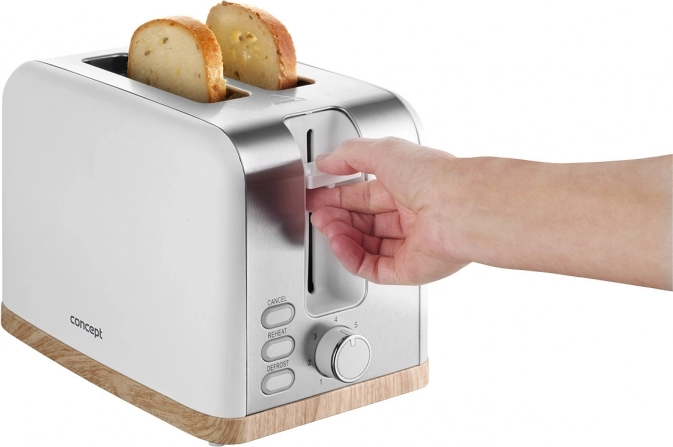 Brødrister Concept Elwood TE2015 er udstyret med en automatisk centreringsfunktion, der sikrer, at skiven brød altid bliver jævnt ristet. Med høj udtrækningsfunktion kan toasten nemt og sikkert tages ud, mens skridsikre fødder sikrer maksimal stabilitet under brug.