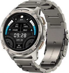 Maxcom Titan Chronos er designet til at holde. Robust rustfrit stål, metalrem og tydelige betjeningselementer giver uret et udtryk og en holdbarhed, du kan stole på. Den letlæselige skærm viser tydeligt tid, dato, vejr og batteristatus, så du altid har det vigtigste for øje.