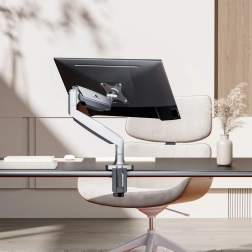 Universel monitorholder fra Maclean, velegnet til skærme med en skærmstørrelse fra 17" til 45" og en maks. belastning på op til 16 kg. Denne holder tilbyder fremragende ergonomi og tilpasning takket være trinløs justering af tilt, rotation og højde via gasfjederen.