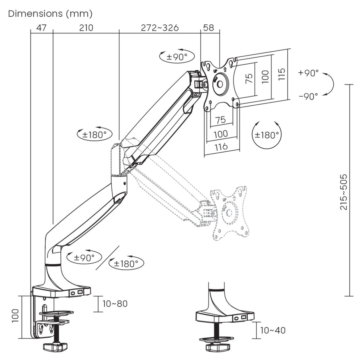 - Kompatibel med VESA-standard: 75x75, 100x100 mm.