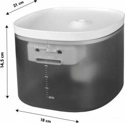 En volumen på 3 l mindsker behovet for hyppig opfyldning og holder vandet tilgængeligt, selv når du ikke er hjemme. Ideel til husholdninger med både hunde og katte.