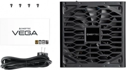 Den pålidelige PC-strømforsyning CHIEFTEC VEGA med effekt på 850 W tilbyder den nyeste standard ATX 12V 3.1, support for PCIe Gen5 og høj effektivitet 80 Plus Gold. Takket være LLC Half-Bridge og DC-to-DC-arkitektur sikrer den stabil strømforsyning, en stille 135 mm FDB-blæser og ekstra lange sorte kabler for problemfri montering selv i større kabinetter.