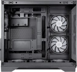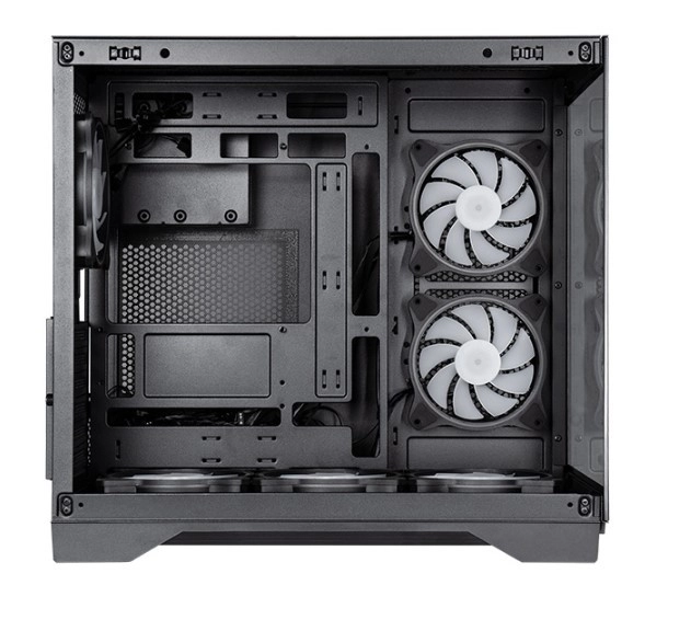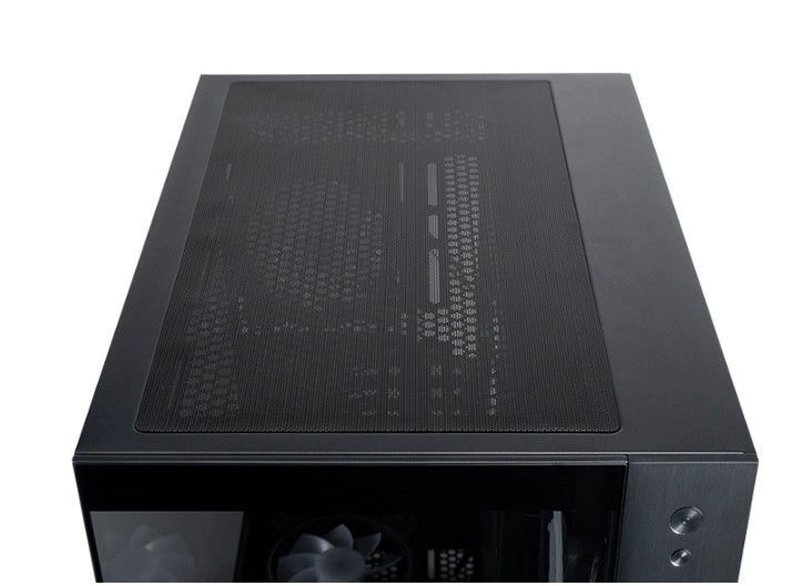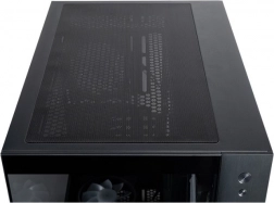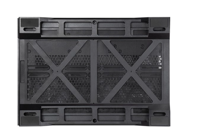 Fem blæsere med omvendt flow-blade sikrer effektiv indsugning fra sider og bund. Understøtter 360 mm radiatorer i top og bund samt 240 mm ved siden af bundkortet.