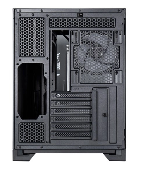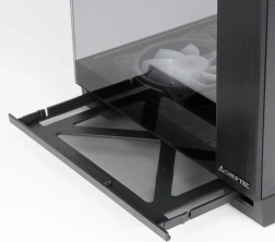 Kabinettet understøtter moderne økosystemer med bagudvendte bundkortstik (kompatibelt med ASUS BTF og MSI Project Zero), hvilket yderligere forenkler kabelhåndteringen og forbedrer luftstrømmen. Takket være det gennemtænkte indre kan du montere 360 mm radiatorer i top og bund eller 240 mm på siden ved bundkortet, CPU-kølere op til 175 mm og grafikkort op til 410 mm.