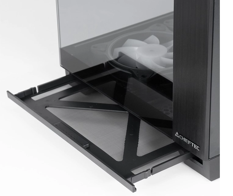 CHIEFTEC Visio GM-30B er et premium mid‑tower-kabinet designet til ryddelig kabelføring, fremragende airflow og flot præsentation af komponenter. To store paneler af hærdet glas sammen med frontglasset fremhæver integreret ARGB-belysning og high-end komponenter, mens det tokammerede layout skjuler kabler og strømforsyning uden for hovedkammeret.