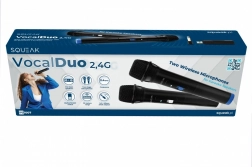 VocalDuo-sættet giver bevægelsesfrihed og ren lyd til karaoke derhjemme og på scenen. Den trådløse 2,4 GHz-teknologi sikrer en stabil forbindelse uden interferens, så du kan fokusere på din performance. To håndholdte mikrofoner med ON/MUTE/OFF-kontakt muliggør hurtig dæmpning og sikker kontrol under optræden.