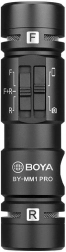 Mikrofon Boya BY-MM1 Pro er designet til dem, der har brug for at optage kvalitetslyd i forskellige miljøer. Med superkardioid karakteristik og dobbelte kapsler kan du fange lyd fra både for- og bagsiden af mikrofonen, hvilket er ideelt til vlogging og interviews.