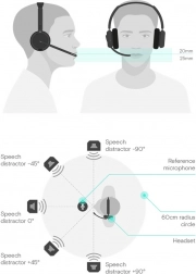 EPOS AI-teknologi sammen med adaptive digitale mikrofoner anvender beamforming til effektivt at identificere og eliminere støjkilder, hvilket sikrer krystalklar stemmegengivelse.