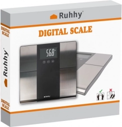 Smart analytisk vægt RUHHY giver dig et præcist overblik over kroppen: vægt 5–225 kg, BMI-måling, kropsfedt, vand og muskelmasse. Den har et overskueligt LCD-display, op til 10 brugerprofiler med smart genkendelse og nem betjening med knapperne SET/UNIT. Robust konstruktion af glas og ABS, automatisk slukning og valg af enheder kg/lb/st for hele familiens bekvemme brug.