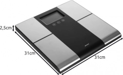 Højpræcise sensorer og kontaktelektroder sikrer pålidelig beregning af BMI samt andelen af fedt, vand og muskelmasse. Resultaterne gemmes automatisk i brugerens profil efter målingen.
