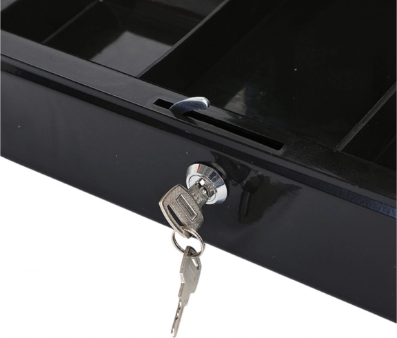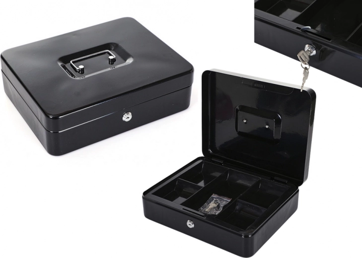 Sikkerhed – pengekassen kan låses med nøgle og beskytter effektivt indholdet mod tyveri.