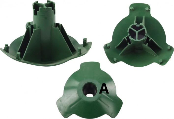 Praktisk korpus til fastgørelse af tre ben på en juletræsfod, som sikrer stabil og sikker placering af træet. Tilbyder nem montering, holdbart materiale og universel anvendelse til almindelige juletræer i hjemmet. Stabil konstruktion, hurtig installation og kompatibilitet med en stammediameter på 3,5 cm.