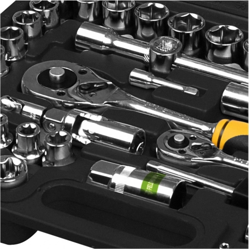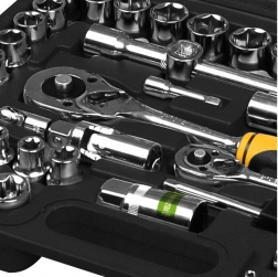 Dette 108-delte sæt kombinerer de mest anvendte toppe, bits og tilbehør, så du nemt klarer montage- og vedligeholdelsesopgaver på bil, cykel eller i hjemmet. Den overskuelige organisering i den robuste kuffert sikrer hurtig orientering og sikker opbevaring.