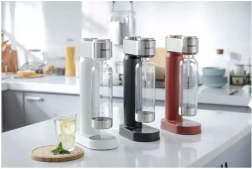 Denne sodavandsmaskine fungerer uden strøm, hvilket betyder, at du kan få danskvand når som helst og hvor som helst – det kræver blot et tryk på knappen.