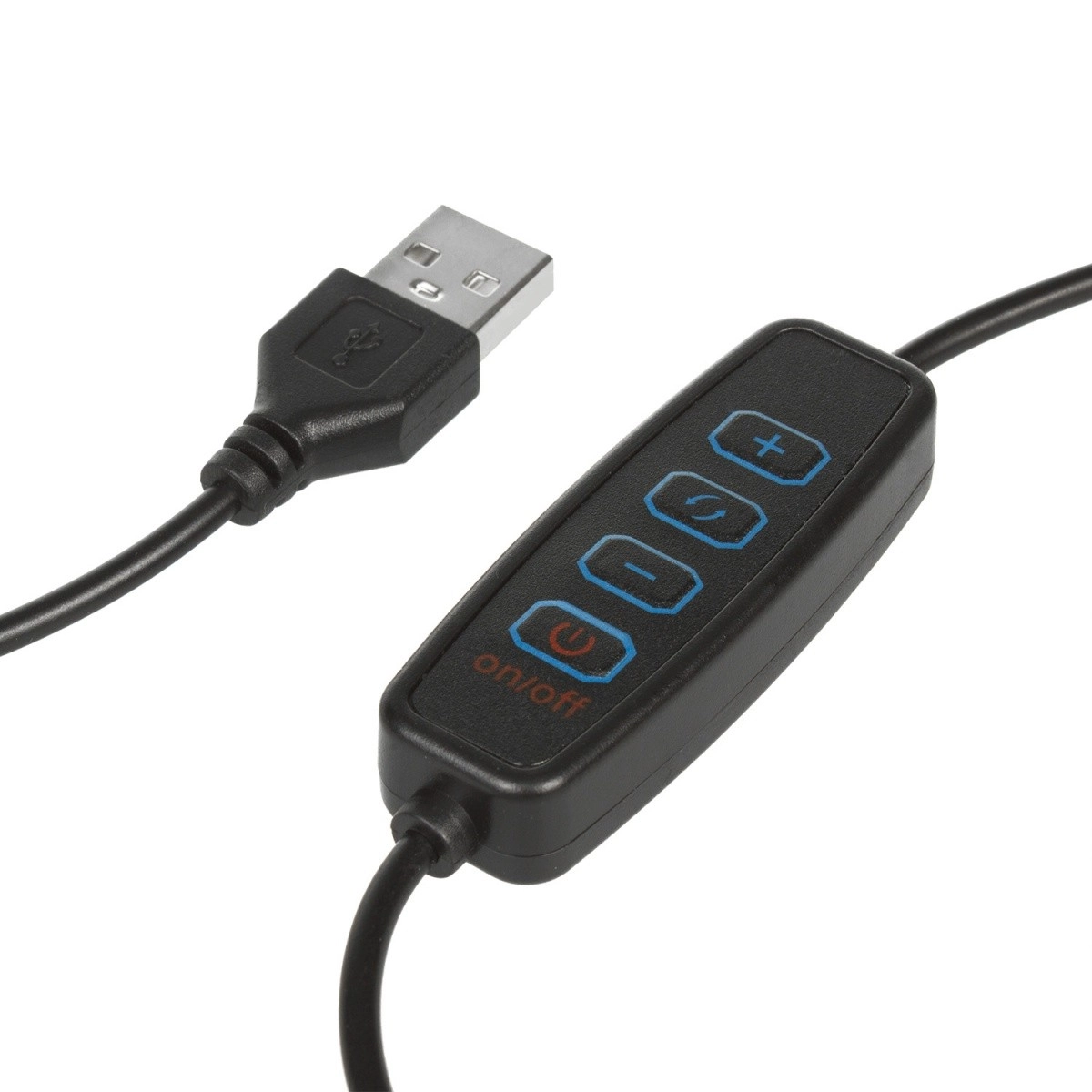 - USB-strømforsyning: Med et 200 cm langt strømkabel med USB-stik kan lampen tilsluttes computer, laptop, powerbank eller oplader.