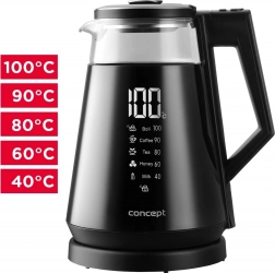 Kedlen muliggør temperaturregulering i fire trin (40°C, 60°C, 80°C, 100°C). Takket være det tydelige digitale display har du fuldt overblik over det valgte program og vandets aktuelle temperatur. KEEP WARM-funktionen holder den indstillede temperatur i op til 4 timer.