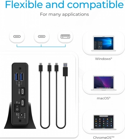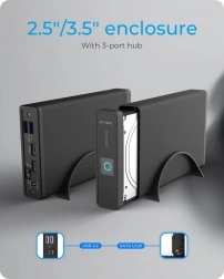 Forvandl en intern 2,5" eller 3,5" disk til en hurtig og pålidelig ekstern lagringsløsning. ICY BOX IB‑382H‑C31 tilbyder moderne USB 3.2 Gen 2 tilslutning med båndbredde op til 10 Gb/s, og takket være SATA III udnytter du den fulde ydeevne af både SSD og HDD. Den integrerede USB-hub udvider dit skrivebords tilslutningsmuligheder med ekstra porte til periferiudstyr.