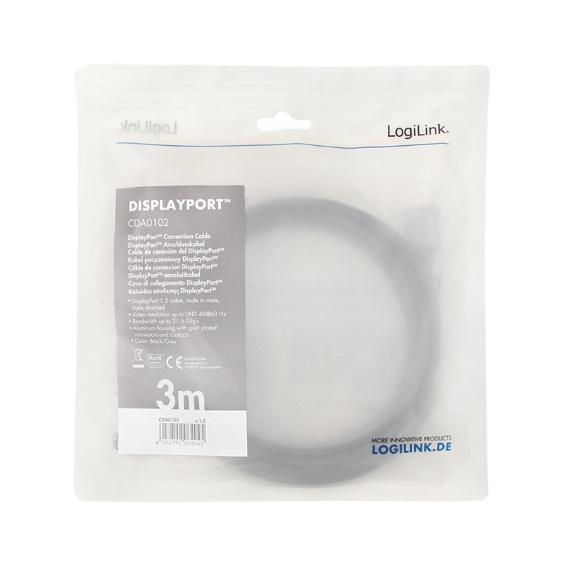 Højkvalitets DisplayPort-kabel designet til at overføre video i høj opløsning op til 4K ved 60 Hz. Dette kabel er ideelt til at forbinde skærme, projektorer og andre billedenheder med en computer eller bærbar.