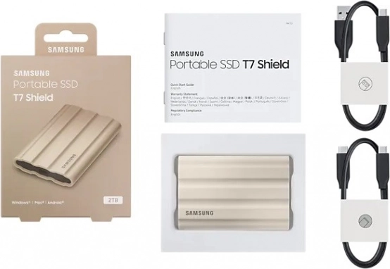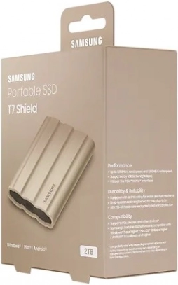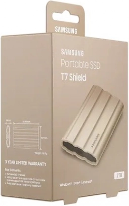 Disken fungerer med PC, Mac og enheder med Android. Med Samsung Portable SSD Software og Samsung Magician kan du nemt indstille adgangskode, håndtere opdateringer, overvåge diskens tilstand og optimere ydeevnen. Det slanke kabinet, lave vægt og kapacitet på 2 TB gør T7 Shield til det ideelle valg for kreative og professionelle på farten.