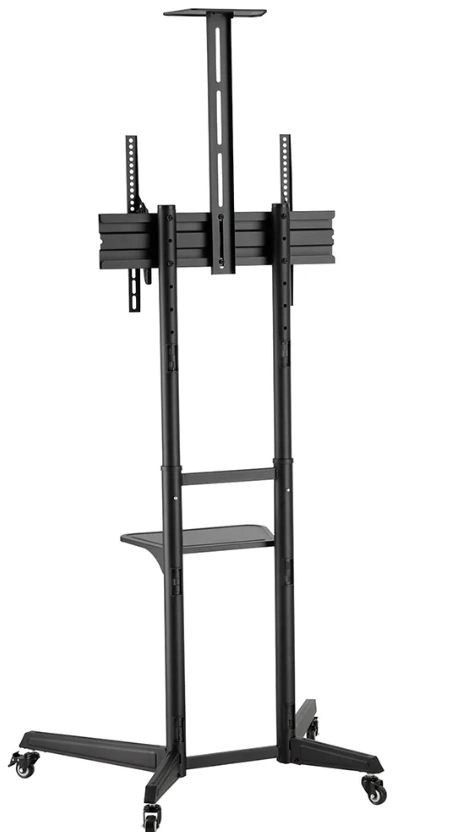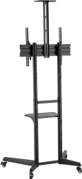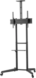 Mobil stander Neomounts er designet til fladskærme op til 70 tommer med en maksimal bæreevne på 50 kg. Den er udstyret med fire højdeindstillinger og en vippevinkel på 17°. Desuden tilbyder den separat plads til multimediaprodukter og er højdejusterbar for at skabe den optimale betragtningsvinkel.
