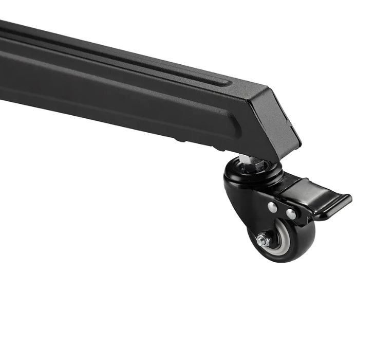 Fire hjul med to bremsemekanismer giver nem bevægelse og sikker placering af standeren.